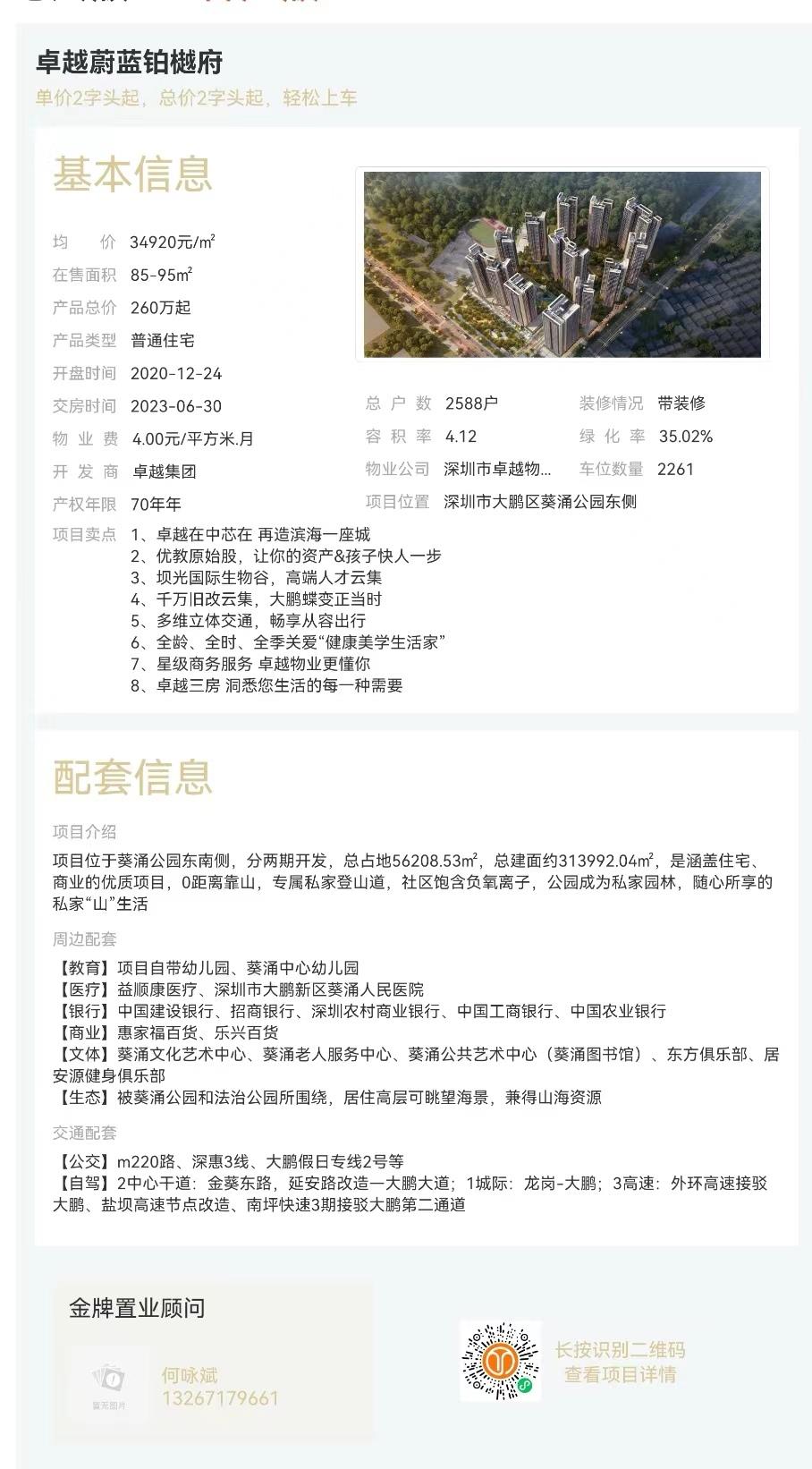 區域:深圳市大鵬區葵浦公園東側 最新開盤:2020-12-24