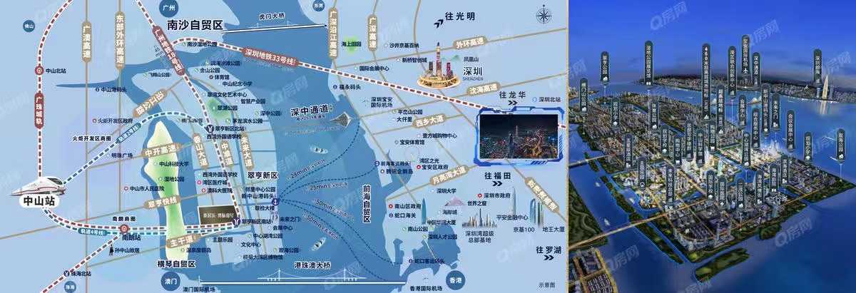 馬鞍島坐擁灣區(qū)中心最矚目的世界級跨海通道工程——深中通道,預計2024年開通,深中通道通車后從中山快速抵達深圳,通勤時間由原來的2小時縮減為15分鐘,馬鞍島更是政府大力發(fā)展的灣區(qū)西重要交通樞紐。周邊有7大軌交(中山地鐵2號線、4號線、廣州地鐵18號線、深中城際33號、3大高鐵站)、5大高速、5大機場、2大碼頭環(huán)伺,而本項目正好在廣州地鐵18號線中山延長線(規(guī)劃中)以及中山地鐵4號線翠亨新區(qū)站上以及中山地鐵4號線(規(guī)劃中)旁。