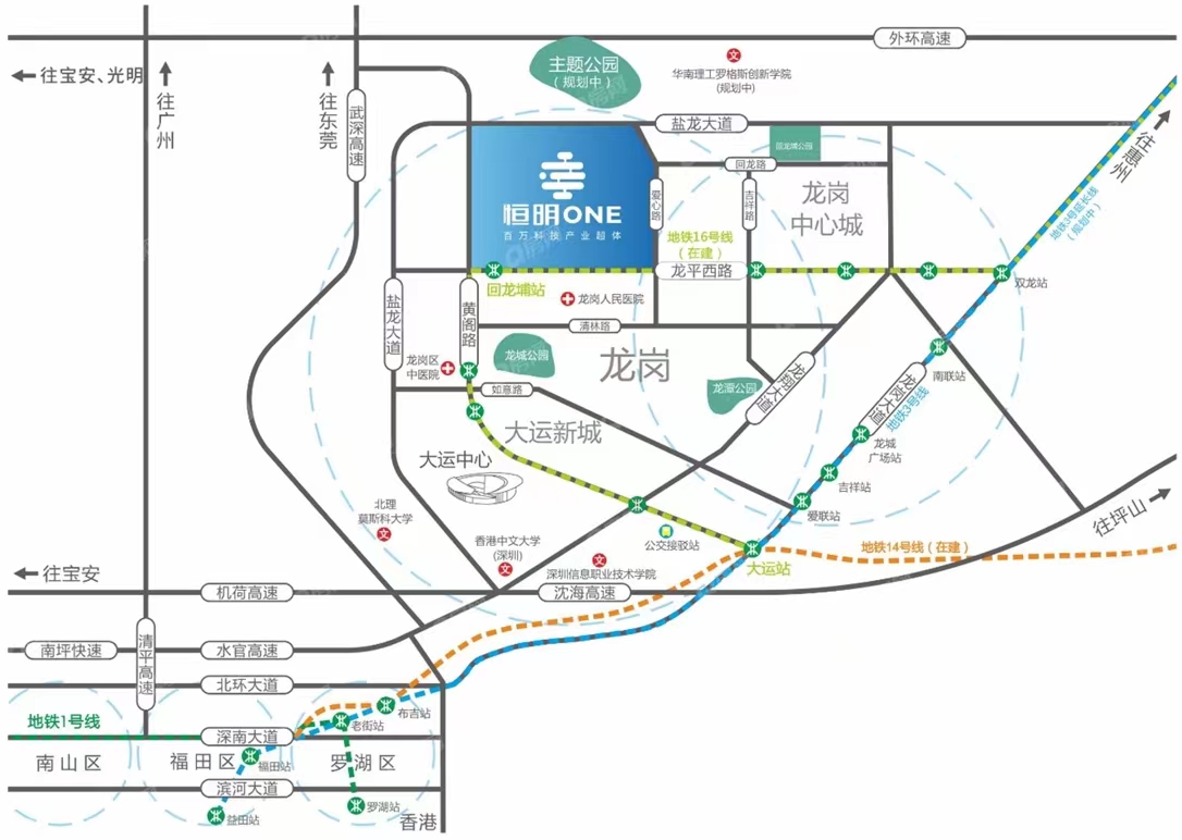 同時,恒明ONE距離龍崗國際大學城3公里。是未來深圳產學研資源和高知人才最集中的區域。