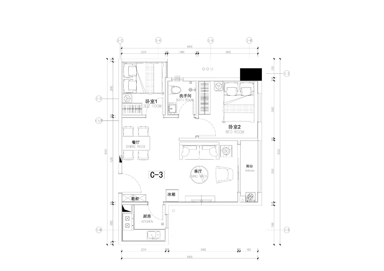 房屋戶型:1室 、2室 、3室 、