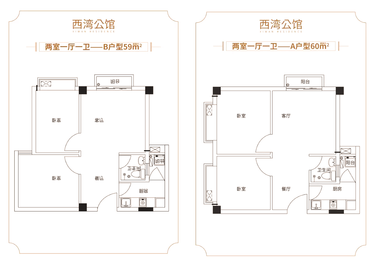 58~60㎡二房一廳一衛