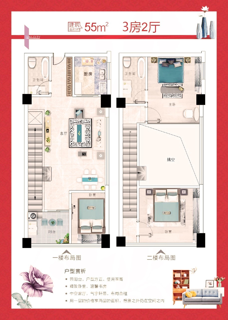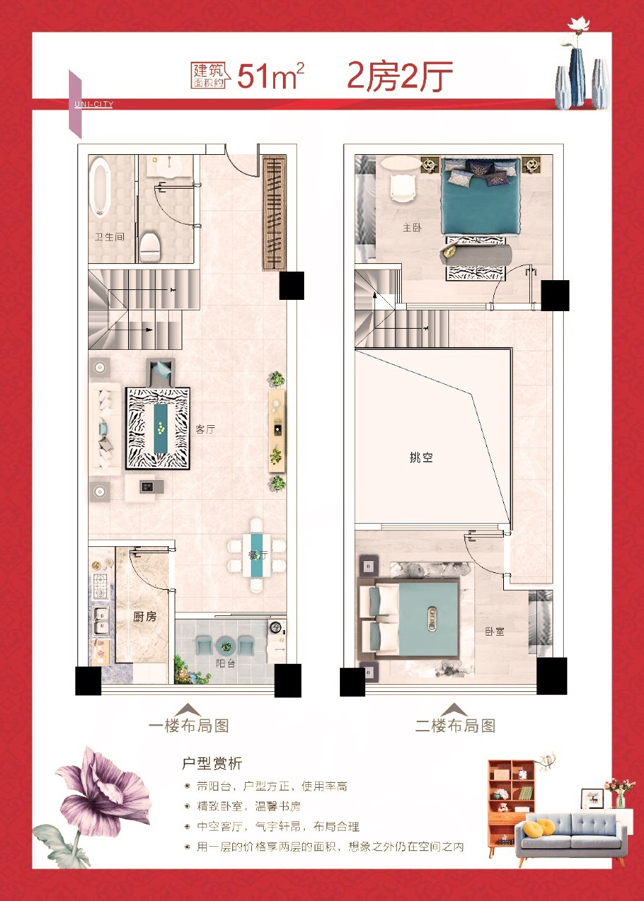 戶 型:兩房約51㎡55㎡