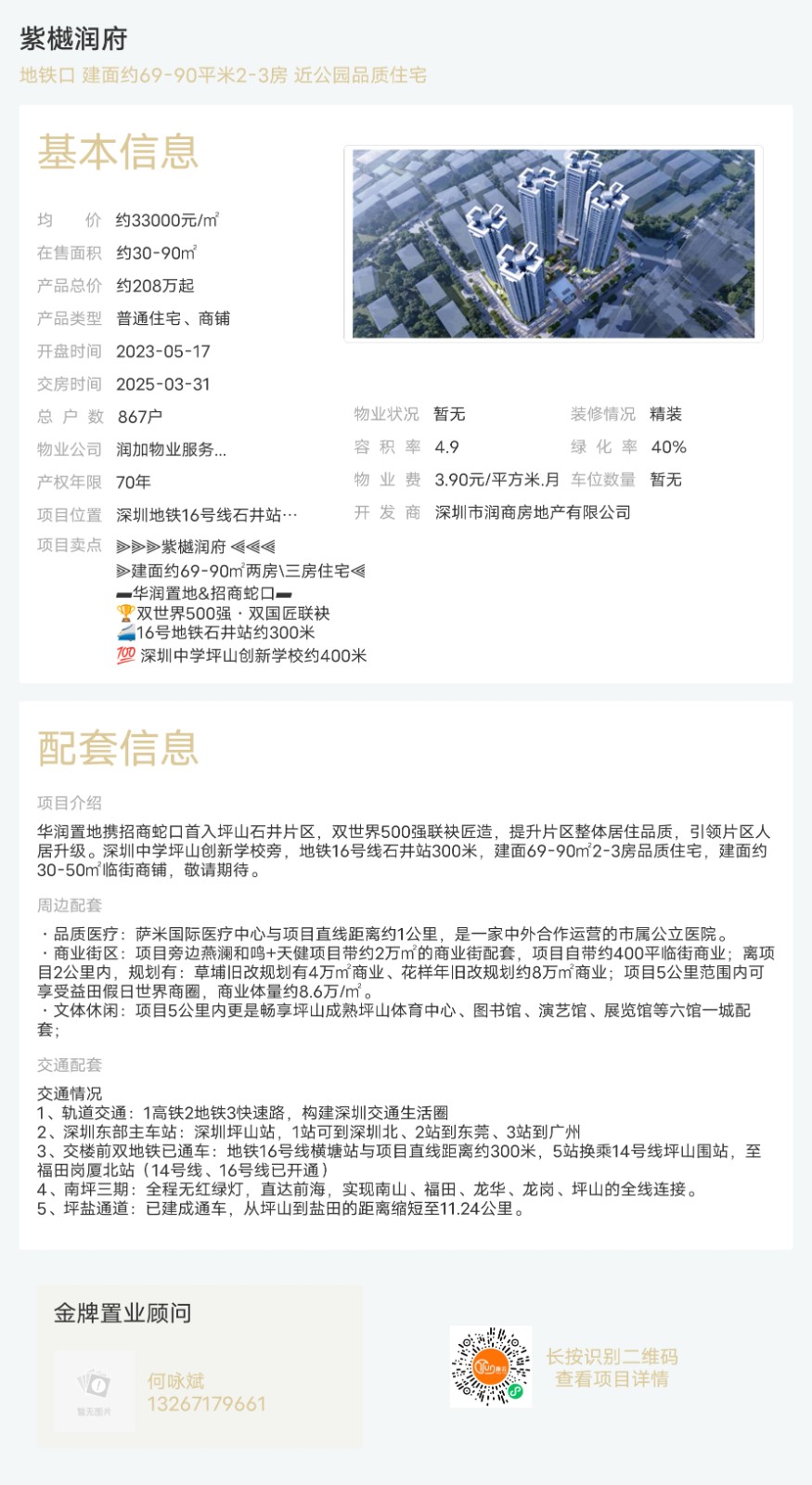 樓盤(pán):紫樾潤(rùn)府物業(yè)類型:普通住宅、商鋪戶型:1室、2室、3室面積:約30-90平米總價(jià):約208萬(wàn)起聯(lián)系人:何永斌聯(lián)系電話:13267179661