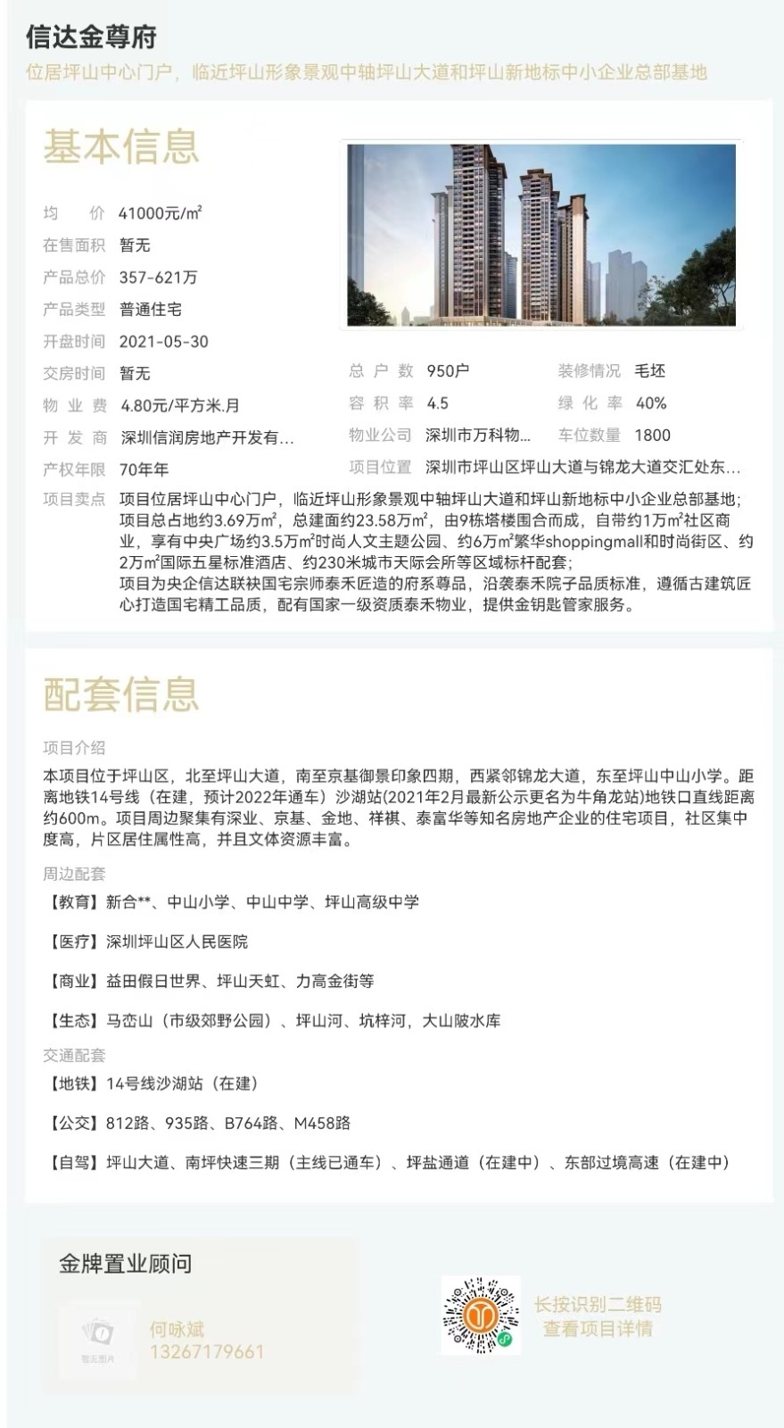 區域:深圳市坪山區坪山大道與錦龍大道交匯處東南側 最新開盤:2021-05-30
