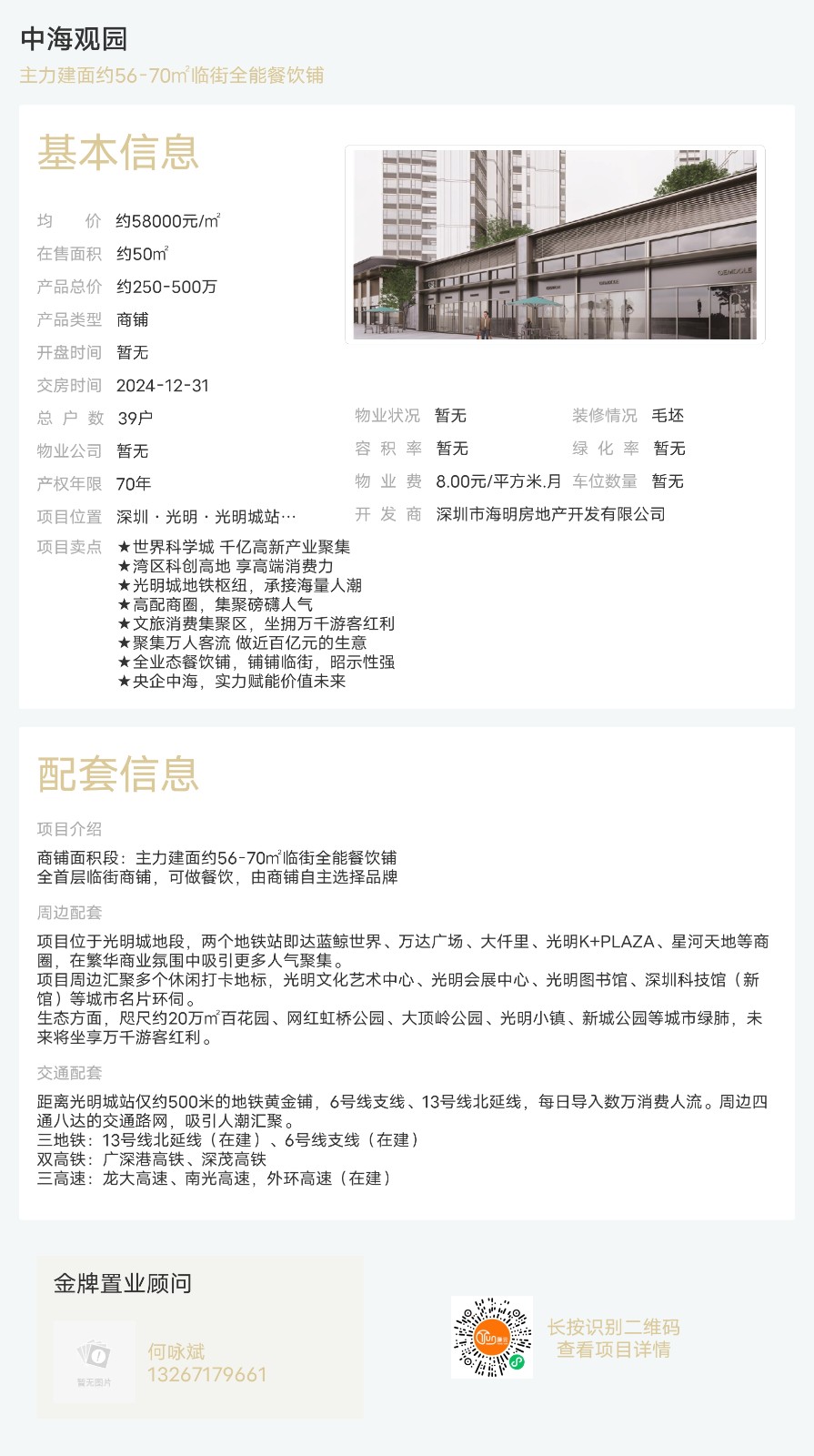 樓盤:中海觀園物業類型:商鋪戶型:1室面積:約50-50平米總價:約250-500萬聯系人:何詠斌聯系電話:13267179661