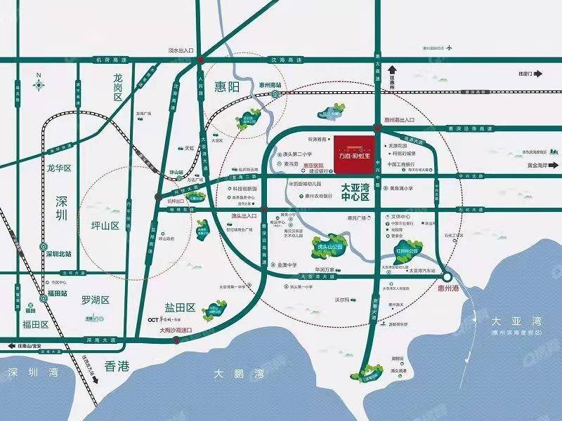 高鐵:項目離惠州南站只8分鐘車程的距離,28分鐘到深圳北站,50分鐘到深圳中心福田,70分鐘到香港九龍。